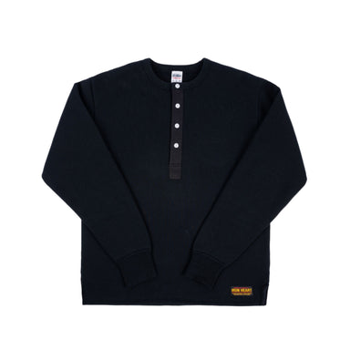 Iron Heart's classic long-sleeved henley sweater, constructed from an 11oz Japanese loopwheel cotton fleece. Lighter and much softer than ultra he...