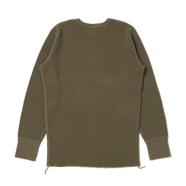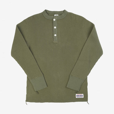 IHTL-1213-OLV Waffle Knit Long Sleeve Thermal Henley Olive