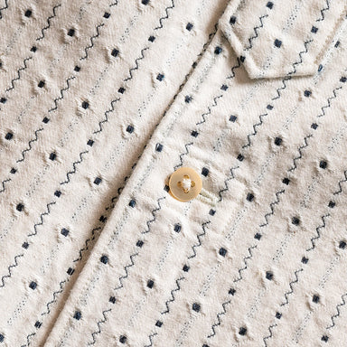 This piece incorporates design elements from vintage 1930s French long-point shirts, sewn from a Japanese jacquard stripe that itself is a faithful...