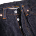 The Flat Head's 18oz Japanese selvedge denim is woven with thick weft threads, to give the fabric a robust, stiff hand and that characteristic heavyweight selvedge denim feel. The thick, irregular yarns also grant a great deal of texture to this fabric, with vertical slub and nep layered within the classic twill weave. Flat Head uses the term "Doshaburi," or "torrential downpour," to refer to the nature of this vertical texture, because the vertical slub really does begin to look like a heavy rainstorm as it fades out more quickly than the smoother parts of the fabric do. Prior to weaving, these threads are traditionally rope-dyed in indigo by Japanese artisans, imbuing the fibers with deep shades of indigo blue that will fade out into beautiful light shades through wearing and washing the jeans.