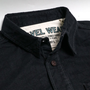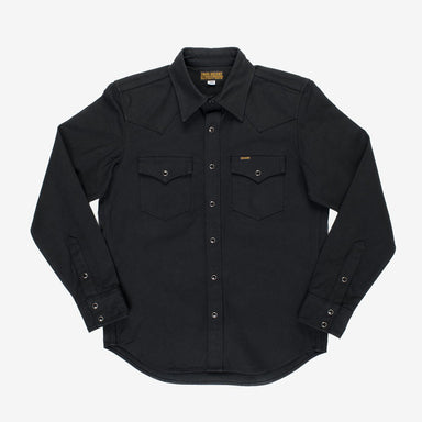 Iron Heart's classic western cut shirt in a sulphur-dyed black military grade heavy cotton serge, with tonal black snaps, and made with our usual f...