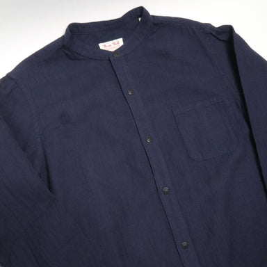 This Band Collar Shirt from UES is crafted from a lightweight, shuttle-loomed and indigo-dyed Japanese dobby cloth, with plenty of subtle, intricat...