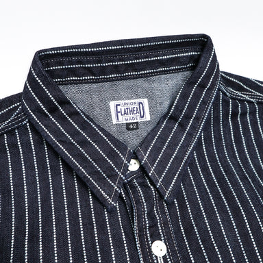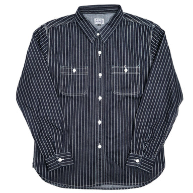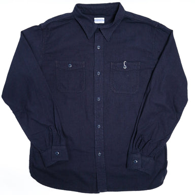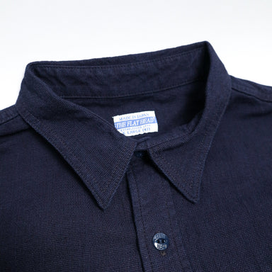 This work shirt is sewn with a lightweight 5.5oz indigo-dyed Japanese dobby cloth fabric, a heavily textured woven jacquard fabric with plenty of b...