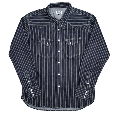 This western shirt is sewn with a lightweight 5.5oz indigo-dyed Japanese dobby cloth fabric, a heavily textured woven jacquard fabric with plenty o...