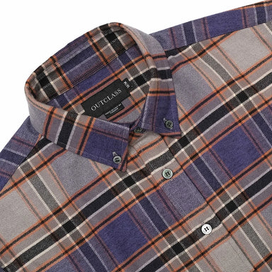 This shirt is crafted from a soft Portuguese flannel fabric featuring a plaid pattern, double-needle seams, a button-down collar, and grey mother o...