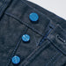 • Custom painted blue iron buttons